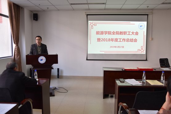 On the morning of January 17, 2019, the faculty of the College of Energy held the faculty meeting and the 2018 annual work summary meeting in the A204 conference room of HeMu building. The faculty attended the meeting. The meeting was presided over by Zhang Zhenghong, President of the labor union.