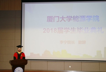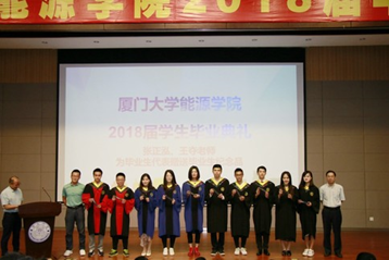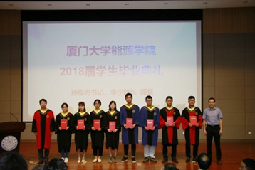 The 2018 graduation ceremony of Energy College of Xiamen University was held in the lecture hall of Dewang Library on June 15. Attendees included Dean Ning Li, Secretary of the Party Committee of the College Ziguang Sun, Vice Dean Lu Lin, deputy Secretary of the Party Committee of the College Zhaohai Ma, Labor union chairman Zhenghong Zhang, Professor Chao Chen, Vice professor Qixun Guo, Lecture Shuirong Li, Class advise Yaoli Zhang and Duo Wang, League secretary Shufeng Gong, Consellor Shiyu Huang. Graduates and their family members attended celebration.