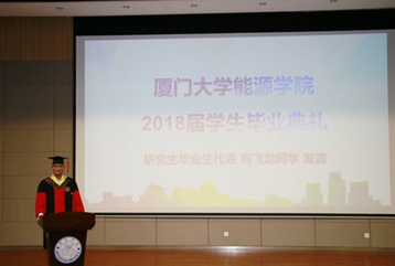Then the representative of undergraduates Shisheng Zheng and the representative of graduate students Feilong Xiao gave their speech to appreciate those concerns and supports from our college staff, and expressed their confidence to inherit the spirit of energy college. They reflected that it’s an honor to graduate from here and they have the responsibility to keep it in the future.