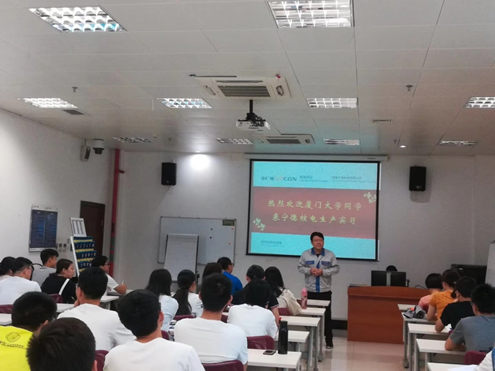 On the afternoon of July 27, Secretary Sun Ziguang, manager of training department Bi Yecheng, the representative of teacher, Zhou Feng, and engineer Zhao Ziquan, as well as51 interns from Xiamen University attended the practice summary meeting. At the meeting, representatives of 11 internship departments made a report about their practice in the past two weeks, focusing on their respective gains and perceptions. In their speech, the students expressed their respect and recognition for the corporate culture of doing things well once of China-Guangzhou Nuclear Power Group, recalled their personal experience during the internship period, and understood how Ningde Nuclear Power combined the concept of safety into the practice of safety and how to transform this concept and practice into a high degree of self-awareness. The students also expressed their sincere thanks to Ningde Nuclear Power Company for the support during the past half month. The representative of the teacher said that the teachers highly praised and affirmed all the students' earnest and rigorous working attitude and eager learning spirit during their internship. He also hoped that in the near future, all the students would find their desired positions and continue to shine with a conscientious working attitude. Then, the manager Bi Yecheng praised the outstanding performance of the energy students during the internship. He hoped that all the students could realize how an enterprise operated from the overall situation through this internship. He also expressed his enthusiasm that the station was like a big family and expressed welcome to all the students to come back and see whether they wereengaged in the nuclear power industry or not in the future. Secretary Sun Ziguang made a final summary speech. First of all, he thanked Ningde Nuclear Power for its strong support and selfless dedication to the internship work of Xiamen University Energy College students in the past three years. With the help of Ningde Nuclear Power, the internship work was successfully completed in 2018. With the joint efforts of both the university and the enterprise, the cooperation between Xiamen University and Ningde Nuclear Power was deepening and the internship form was gradually standardized. With the long-term strategic partnership just established, the cooperation between the two sides will surely be deepened. Secretary Sun expressed his satisfaction with the students' two-week internship performance. He hoped that all the students would start with their outlook on life and values and put forward higher requirements for themselves. He encouraged them to continue to carry forward the spirit of pursuing excellence proposed by Ningde Nuclear Power in their future study and work life, achieve greater achievements and take every step of life well.
