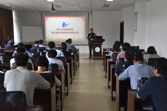 In order to improve the teaching ability of young teachers, show their teaching charm, and provide them with a platform to exchange teaching experience and show their teaching level, on April 12, 2018, the Department Trade Union and the Ministry of Education jointly organized the Third Competition of Young Teachers’ Teaching Skills Competition of in the College of Energy, Xiamen University. The competition was hosted by Zhang Zhengyi, the chairman of the Department Labor Union, and invited Professor Yang Wenchuan, a judge of the Xiamen University Young Teachers’ Teaching Skills Competition, as the guiding expert. The judges were Professor Wang Zhaolin, Vice Professor Guo Qixun, Vice Professor Wu Yichun and Vice Professor Zhao Yingjun.