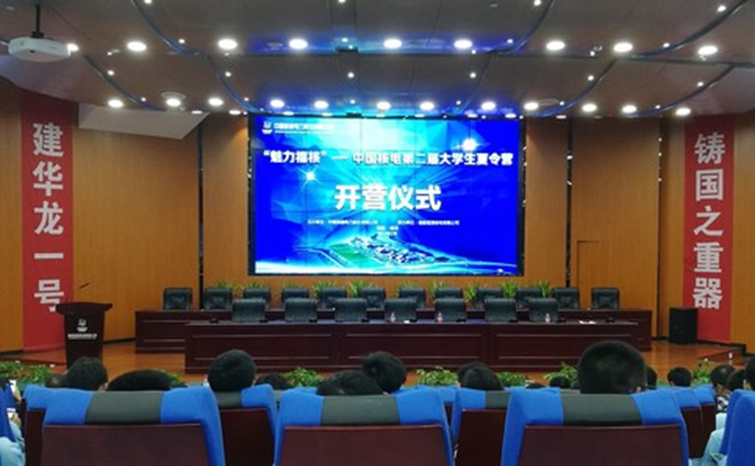 The next morning, all campers and teacher delegates were present in the opening ceremony. Academician Nai Yan wang from Chinese Academy of science , secretary XiaoWei from the board of Chinese Nuclear Power and President Li Xu from Fu Qing Nuclear Power made their statement. And then, communications were practiced and the report concerning chances and challenges in the development of nuclear power was shared. After lunch, students paid a visit to the exhibition room and learned about the model of “Hua Long 1”.
