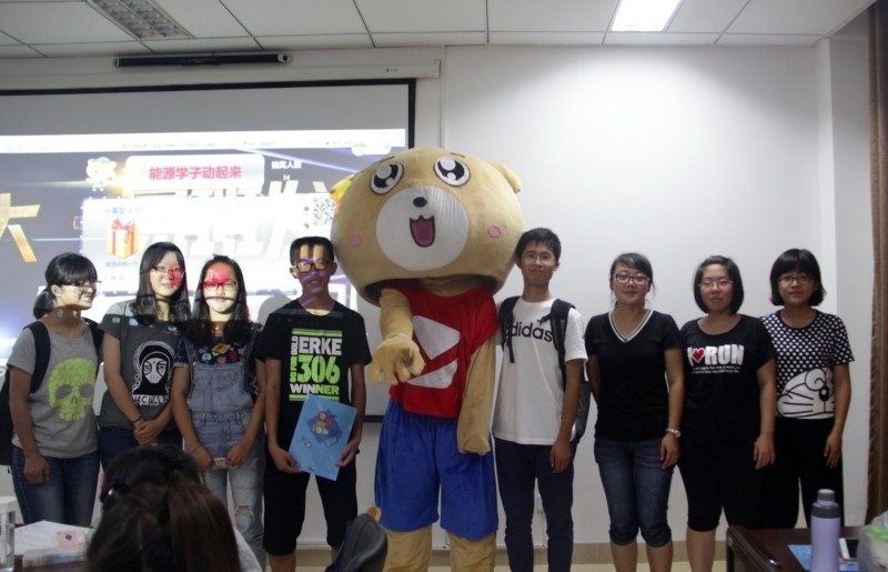 At the end of the conference, we had a lottery activity. Finally, two students got the first prize-a cup. Three got the second prize-a paper file. Five got the third prize-a key chain. All the prize-winners took a photo with the Yiban Bear as a memorial.