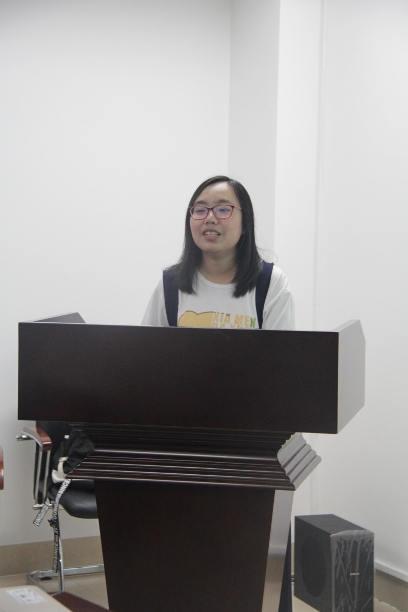 Firstly, Miss Wang told us about the primary functions of Yiban, containing registration, Lost and Found, the exchange of virtual currency and material objects and booking tickets. She mainly introduced the operational process of the registration and the tickets' booking to make the new students understand the functions more clearly.