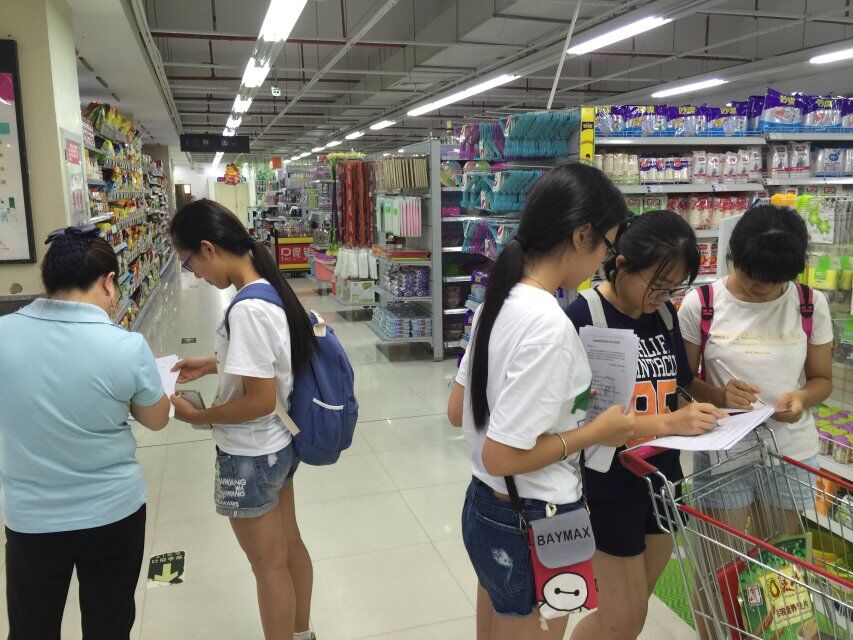 The first group went to the nearby community and interviewed local citizens with questionnaires. FortunatelyTo their surprise, in the course of the survey, Ggroup 1 came across the staff from of China Nuclear Power Engineering Co., Ltd, who warmly received greeted XiaoHe them and offered precious proposals to their work. The sSecond group wentcame to downtown Yunxiao, and they called at local markets and their research work won public support.