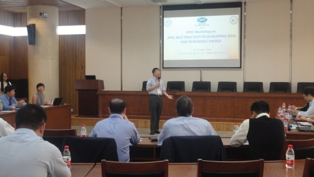 In the expert closed door meeting between 16thand 17th, Zhang Shuang, China representative of APEC energy working group and Zhang Fengyan, director of Solar Energy Research Institute, which is attached to College of Energy in Xiamen University, both gave welcoming speech. Yang Changzhong , China Taipei representative of the new energy and renewable energy technology expert group, hosted the meeting. Wan Lin, China representative of the group, gave a speech on the new energy and renewable energy policy and development in China during recent years. All participating experts in various economies offered ideas on the new energy and renewable energy development strategy and priority problems in the APEC.