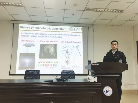 To introduce nano energy and self-driven system, Mr. Xie gave us a description about the background, fundamental knowledge, design of instruction and latest achievement of nano energy and self-driven system.