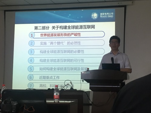 Mr Zhou Yuanbing firstly introduced the basic contents and key points of energy Internet from the theoretical aspects, so that students have an intuitive impression of the Internet. Then he showed the feasibility and necessity of the energy Internet on the base of global energy Internet. In the end, he exchanged many ideas with students.