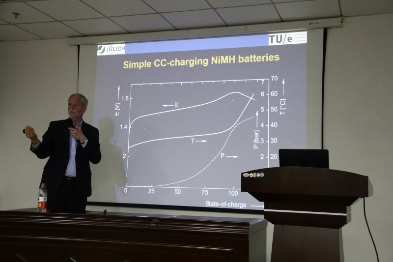 Then, Professor Peter HL Notten introduced the new battery technology, he proposed the dream of new energy development - electric vehicles, which is a new vehicle that using new battery as energy storage. It was a revolutionary strategy in the new energy vehicles. When it comes to the battery, the current electric vehicles rely mainly on lithium batteries. Then the concept of nickel-metal hydride batteries, thermodynamics and dynamics of the battery was introduced in the speech.