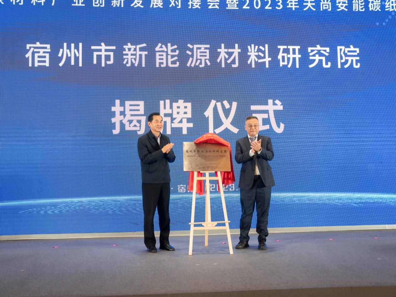宿州市政协主席许广斌、厦门大学校长助理李智勇共同为宿州市新能源材料研究院揭牌