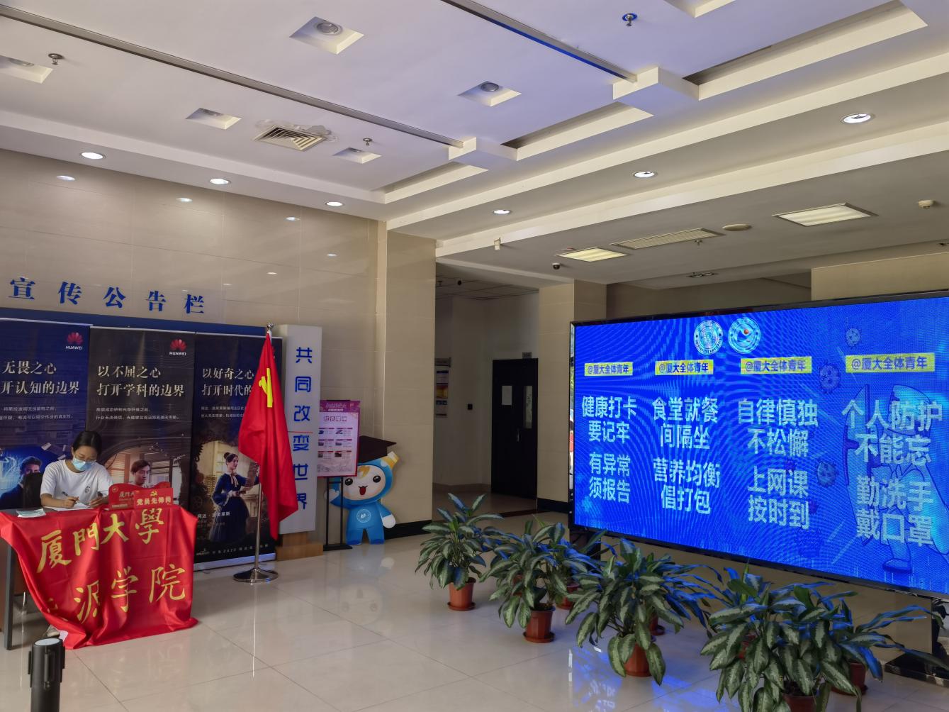 学院党员们齐心协力,共同战疫。院党委副书记罗俊峰克服孩子幼小、爱人被抽调到参加同安防疫的家庭压力,与工作小组一起,轮流值守卡点,这一周来,不少天都在深夜的和木楼研究防控方案、处理突发事件。学院团委书记方晨亮、辅导员施珩忙完迎新和新生教育后,迅速投身到学生疫情防控管理工作中,在做好自身防护的同时,主动为隔离学生搬运行李,每天在微信上嘘寒问暖,安抚他们紧张焦虑的情绪。