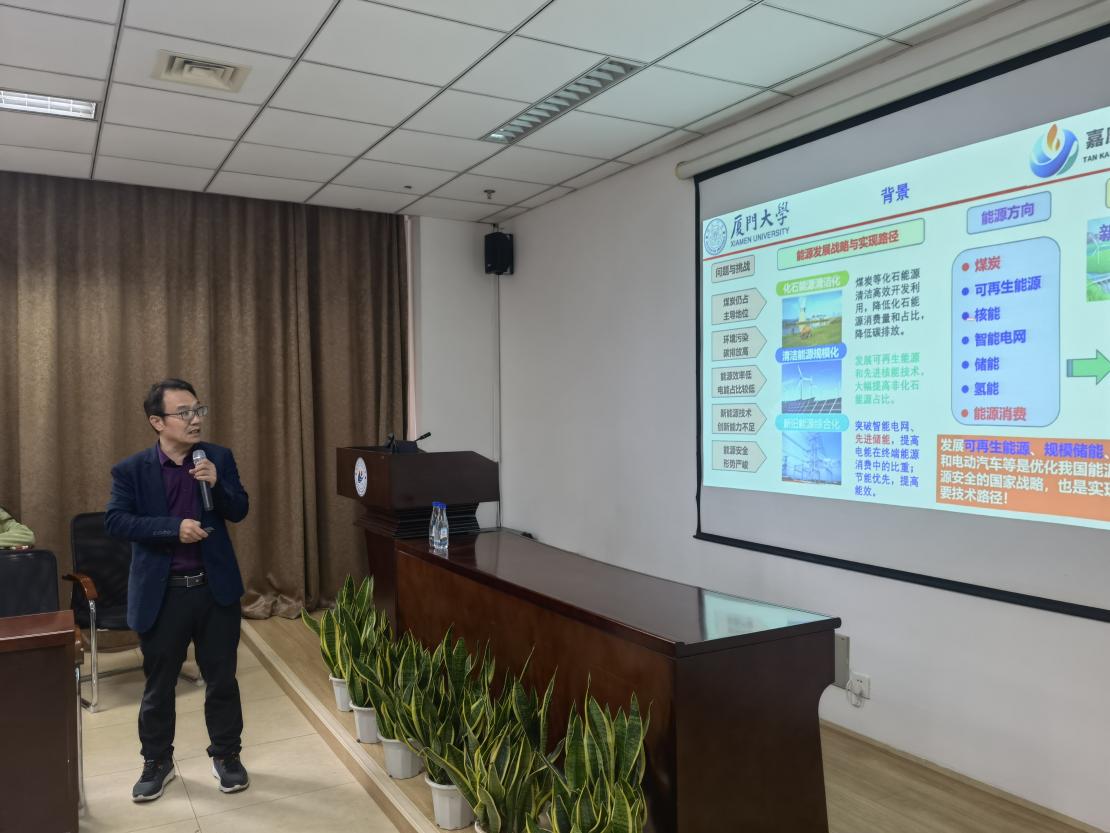 新能源学系系主任曾宪海和储能学系系主任李君涛分别作《新能源学系的发展历程与现状》《储能科学与工程暨人才引育工作》专题发言,各自围绕人员情况、教学科研、社会服务等方面,分析了学科发展面临的机遇和挑战,为学院建言献策。