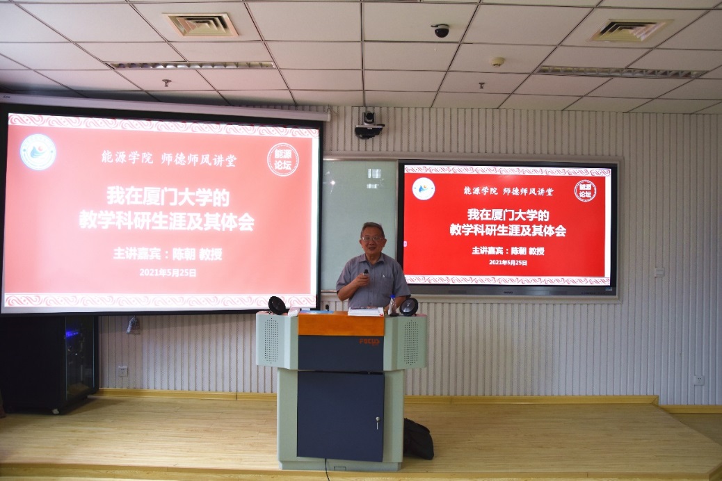 传递教书育人正能量,弘扬师德师风主旋律。能源学院党委以立德树人为出发点和立足点,于525日上午举办师德师风讲堂暨能源论坛,邀请学院荣休教授陈朝老师为全体教职工、研究生和本科生党员做报告。
