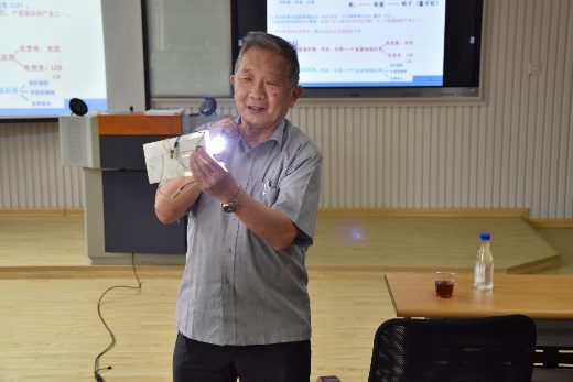 本次讲堂,陈朝教授讲授的主题是《我在厦门大学的教学科研生涯及其体会》。他系统梳理了自己55年躬身教育教学工作的经历,讲述了一件件与学生相处的趣事。他还借助简单教具,以非常形象有趣的方式介绍了他一生所从事的半导体光电领域的主要工作。最后,陈朝教授从教育的性质、任务、目标、模式等方面,阐述了他对教师工作的理解,“在学生最需要的时候真诚地帮助他们”,这句朴素的话,传递了陈老师对大学老师身份职责的理解,也是他这一辈子矢志追求的平等、和谐、相互理解、尊师爱生的师生关系写照。