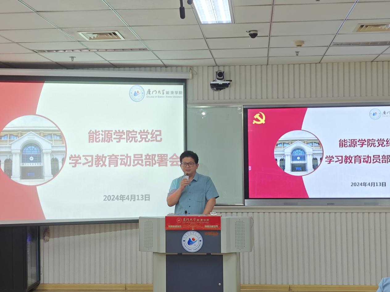 为深入学习贯彻习近平总书记关于开展党纪学习教育的重要讲话和重要指示精神,落实《厦门大学党纪学习教育实施方案》要求,4月13日上午,能源学院在和木楼A221会议室召开党纪学习教育部署会。学院党委委员,全体师生党支部书记、支部委员参加会议。会议由学院党委书记王洁松主持。