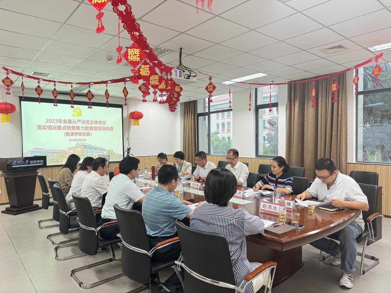 检查组对照《厦门大学基层党委(党总支)落实全面从严治党主体责任清单》,通过座谈交流、查阅材料等方式,逐项检查能源学院党委主体责任落实情况,并反馈检查初步意见。王洁松代表学院党委表示,学院党委接下来将以查促建,结合党纪学习教育,以彻底的自我革命精神推动全面从严治党向纵深拓展。