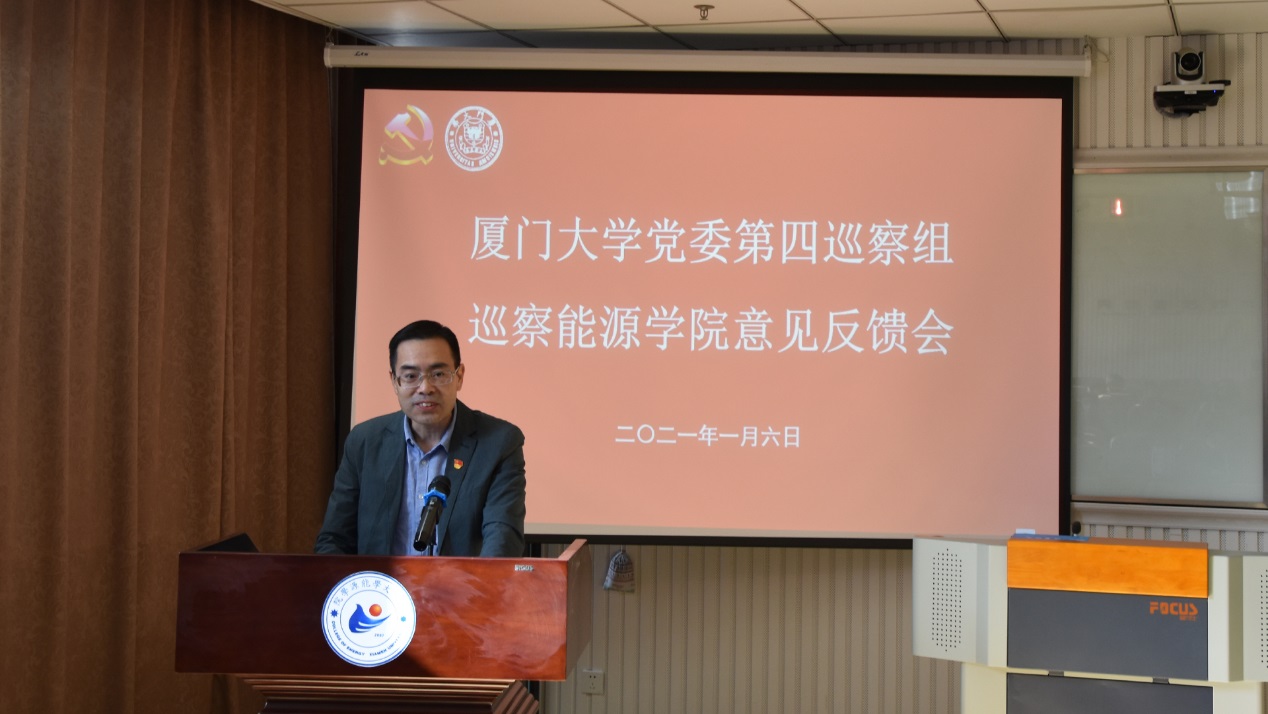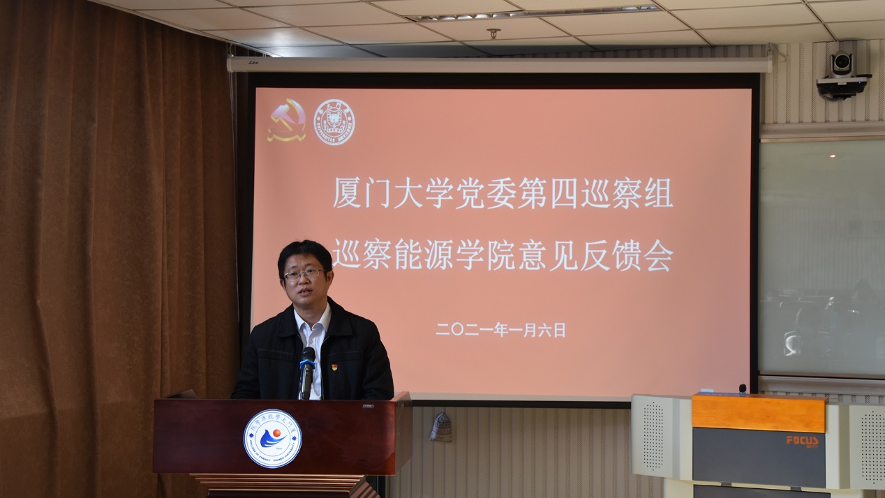 1月6日上午,厦门大学党委第五轮巡察第四巡察组巡察能源学院意见反馈会在和木楼A221会议室召开。第四巡察组组长王康平,党委巡察办副主任洪真裁,第四巡察组副组长杨蔷,巡察组联络员戴丹妮出席大会。大会由能源学院党委书记孙梓光主持,学院党政领导班子成员、在职教职工参加了会议。