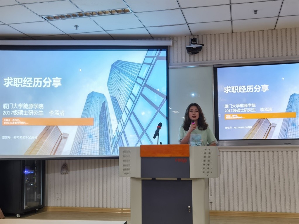 凤凰花开季,人约在能源。2020年6月15日19点,在能源学院A221,即将毕业的研四位研究生究生带着对母校,对学院的留恋,以及对学弟学妹们顺利度过校园生活的真诚祝愿,无私全面的把自己同学们带着自己的求职、升学、考公的经历观察与体会经验与同学们进行分享。出席本次毕业生交流分享会的有学院党委副书记罗俊峰老师、辅导员黄诗雨老师以及毕业生李孟渚、林鸿宾、陈艺芬、梁腾和。毕业生同学们就自己的求职就业以及申请博士等经历进行分享,罗俊峰老师进行了最后的总结发言,全场气氛热烈。