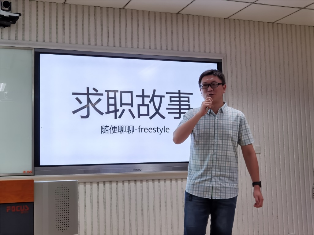 梁腾和同学签约了华为,在本次交流分享会中,他以轻松幽默的语言讲述了自己求职的故事,并给出了自己的几点建议,他还把自己的求职经历写成一首歌词,现场朗读给同学们听,他的压轴讲解,也为这场交流会划下圆满的句号。