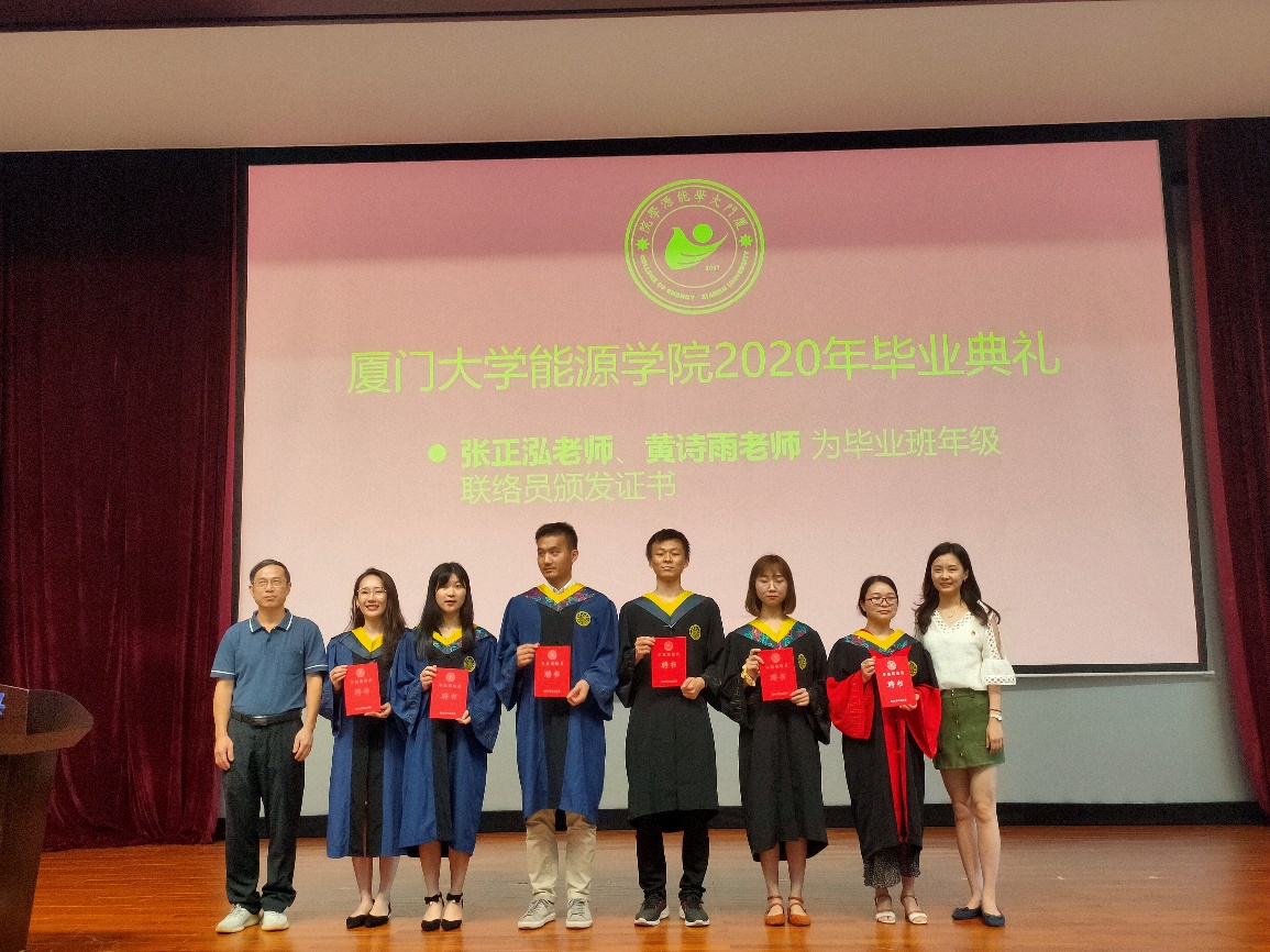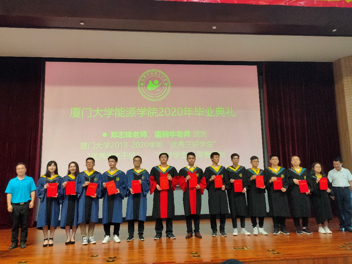 副院长郑志锋老师宣读了“2020届毕业生”名单和“优秀毕业生、优秀三好学生、优秀学生干部、三好学生”荣誉称号获得者名单,孙梓光老师和林鹿老师共同颁发了厦门大学2020届“优秀毕业生”荣誉证书,郑志锋老师与唐拥华老师颁发了厦门大学2019-2020学年“优秀三好学生”、“优秀学生干部”、“三好学生” 荣誉证书。