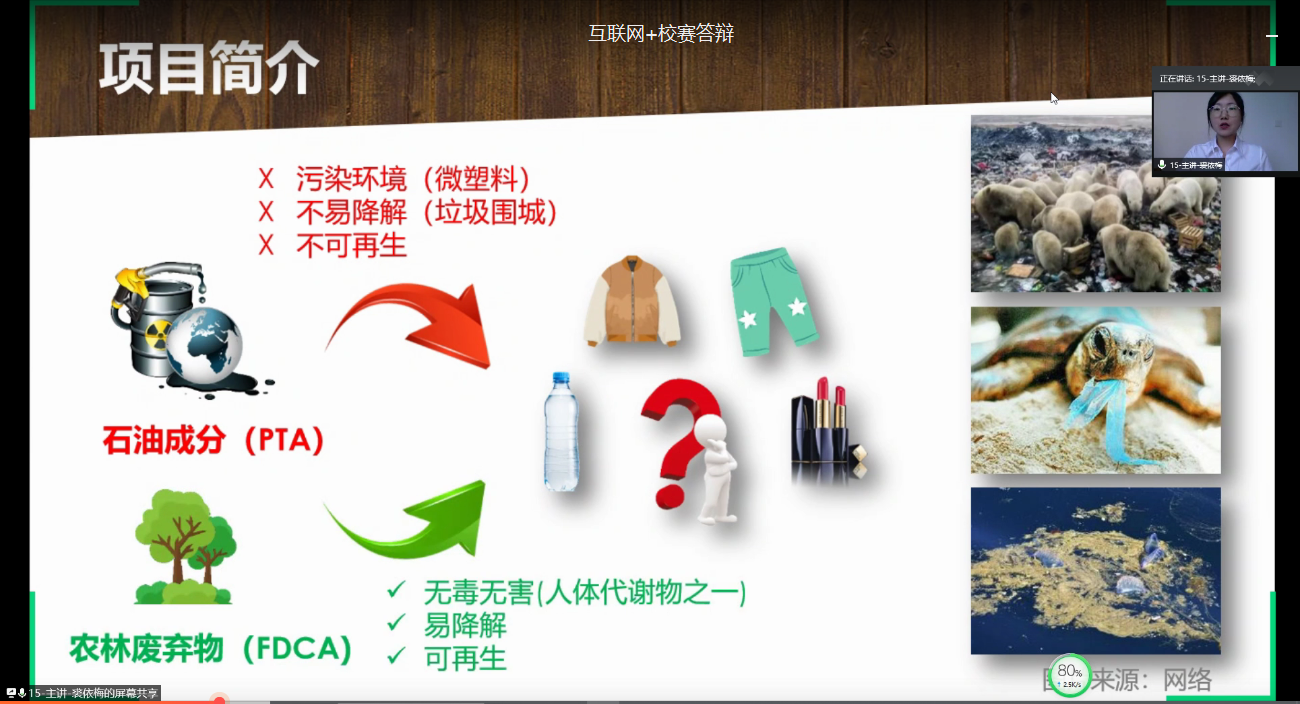 红旅赛道金奖团队“呋喃筑梦”由我院生物能源研究所副教授唐兴指导,我院2019级材料工程硕士生裘依梅担任项目负责人,能源学院、管理学院、环境与生态学院等10余名本硕博学生作为团队成员。该项目致力于使用玉米芯、秸秆等农林废弃物作为原料,制备新型聚酯材料——呋喃二甲酸,用以替代石油资源对苯二甲酸生产纺织品及塑料容器等,帮助农民创收增收的同时,引领绿色、环保、健康生活新潮流。