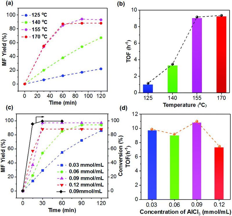 (d) TOF value obtained at different AlCl3 concentrations.