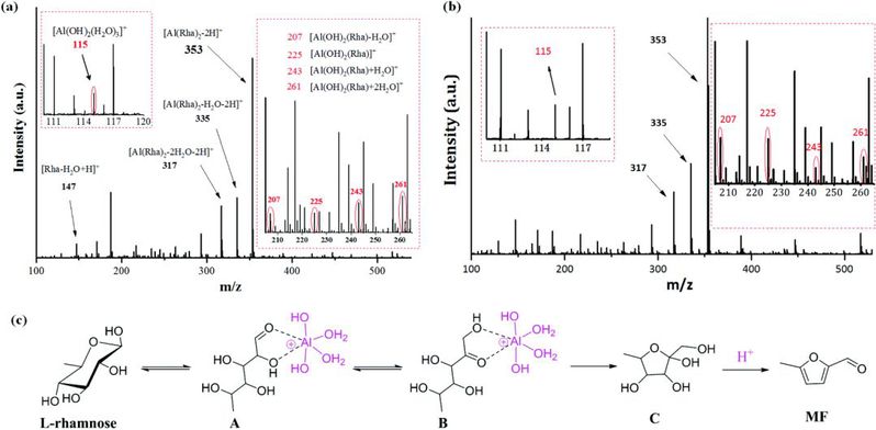 (c) The proposed reaction mechanism for the conversion of l-rhamnose to MF with AlCl3.