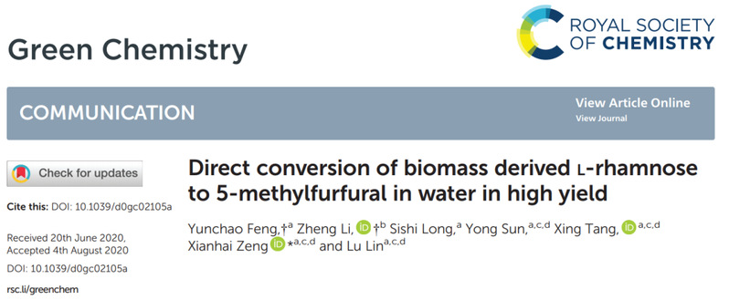 关键词:生物质转化, 5-甲基糠醛, 6-脱氧糖, 鼠李糖, 催化