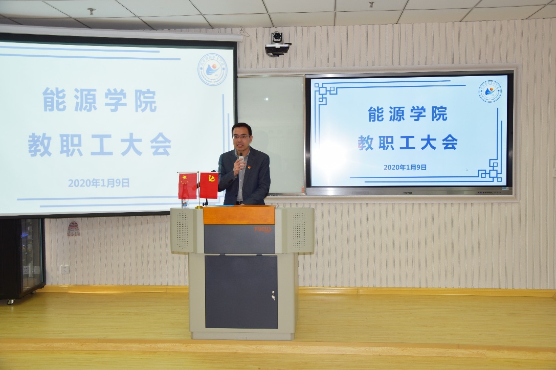 2020年1月9日上午,能源学院在和木楼A221会议室召开全院教职工大会暨2019年度工作总结会,全院教职工出席会议。会议由学院工会主席张正泓主持。