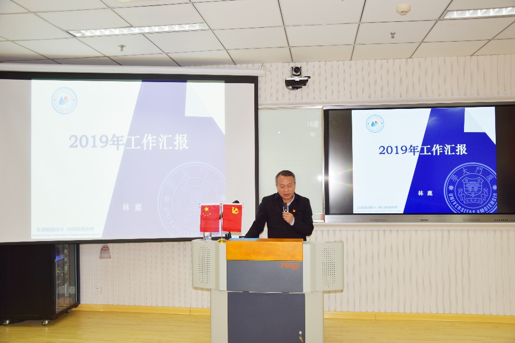 随后,林鹿副院长就科研、人事、研究生教学工作,郑志锋副院长就本科生教学工作,马兆海副书记就学生工作等方面做年度工作进行总结。这一年,学院完善人才培养体系。连续三年本科生志愿满足率100%,学生就业率100%,2019年毕业的博士生人均发表1区论文为全校第一;获得学校2019年度学生工作特色单位;获得第五届中国“互联网+”大学生创新创业大赛金奖。科研工作取得重大进展。到账经费2840万元,人均到账经费首次超过100万元。实现国家重点研发项目课题主持单位零的突破,在可再生能源与氢能技术重点研发专项获批2个课题,首次获批国家自然科学基金联合基金重点项目。科研平台继续保持高质量建设水平。厦门大学新能源装备研究院获批成立;国内唯一、世界领先的“多离子束与透射电子显微镜联机设施”通过技术验收。