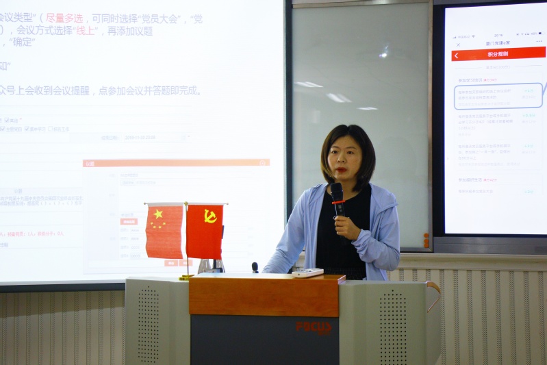 2日上午,学院党委邀请党建办主任兼组织部副部长、教师工作部副部长廖志丹讲授专题党课《共产党人的初心和坚守》。会上,廖志丹从共产党人初心的由来与坚守、新时代中国应对多重风险与永葆政治本色的必要性、开展“不忘初心、牢记使命”主题教育的背景、内涵、迫切需要和具体要求以及厦门大学开展此次主题教育的相关要求等方面进行了解读。“通过此次专题党课,我更加坚定了要坚守初心、勇担使命,作为一名学生党员、厦大学子,要将爱国热情转化为新时代青年学子的使命和担当。”本科生第一党支部书记刘星雨动情地说道。