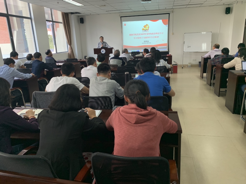 最后,院党委书记孙梓光传达了习近平总书记在党的十九届四中全会上的重要讲话,带领大家学习了党的十九届四中全会公报,作出了在全院上下学习贯彻党的十九届四中全会精神的具体安排。