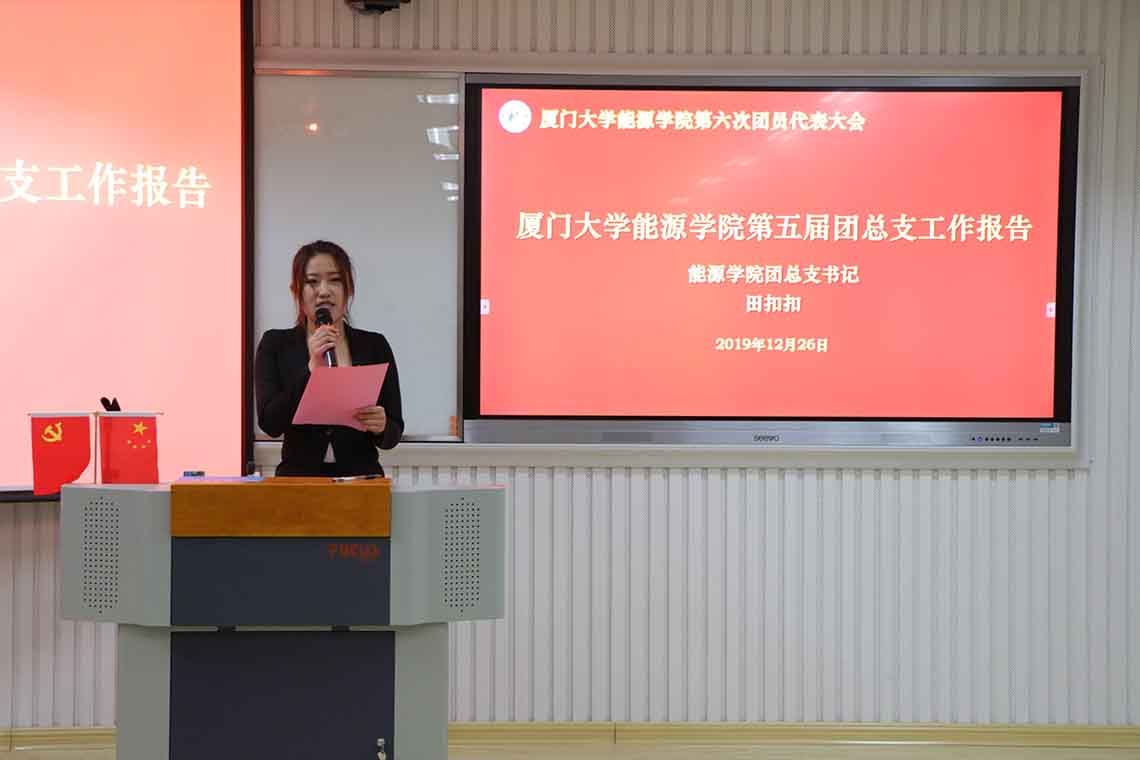 随后,由田扣扣作能源学院第五届本科生团总支工作报告(草案),并由总监票人谢榕顺公布计票与选举结果。