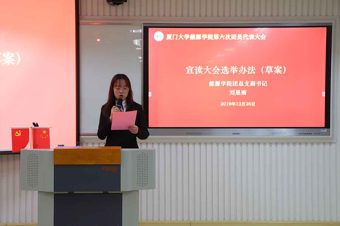 随后,院团总支副书记刘星雨分别宣读了《能源学院第六次团员代表大会代表资格审查报告》(草案)以及《能源学院第六次团员代表大会选举办法(草案)》,并进行了审议。