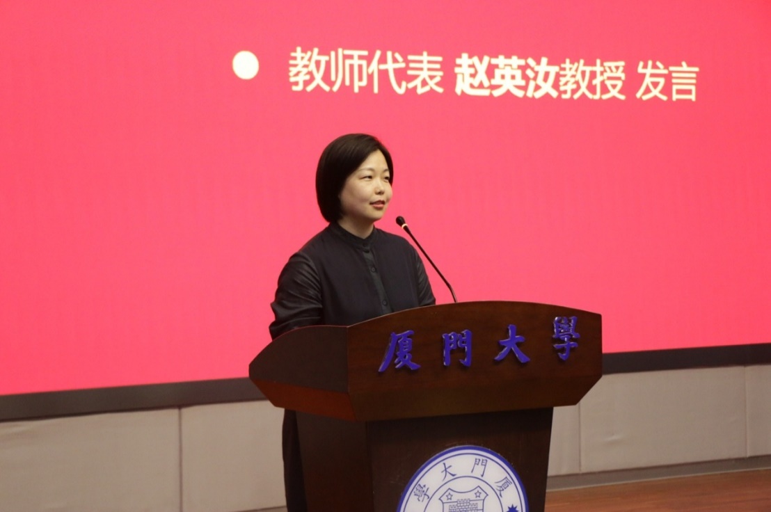 接着,赵英汝教授作为教师代表为毕业生们分享了自己人生道路上的“坚持努力”、“享受挑战”和“改变发展”的故事,祝愿毕业生们都能取得成功,迎接超乎想象的幸福未来。