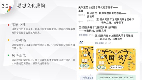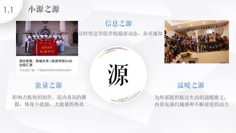 小源工作室在学院党委领导、团委指导下,于2016年2月成立以来,建立了以厦之能量源公众号为主,公共微信号及官方微博为辅的多元网络宣传平台,致力于成为报道校院最新动态的信息之源、弘扬网络正能量的能量之源和充满归属感的温暖之源。工作室由大三到大一的学生组成梯度式团队,设有主任团成员2名,其他成员14名。为充分发扬“小能源,大能量”的精神,工作室结合专业特色,创设“能源论坛”、“能动科技”特色栏目激发学生专业兴趣;发扬人文精神,打造“那年今日”、“风华正茂”等系列专题助力校园文化建设;致力于服务全院师生,开设“一勺鸡汤”、“小源直通车”等长期原创连载版块。此外,在校运会、元旦晚会、毕业季等各大活动期间,工作室为全院提供优质的信息及互动平台,其中校庆专题《多的是,你不知道的事》、毕业季专题《我们,再出发》等推送阅读破千;元旦晚会实时互动高达2953次,超过平台粉丝数的三倍,达到了“参与一个,收益一个”的效果。