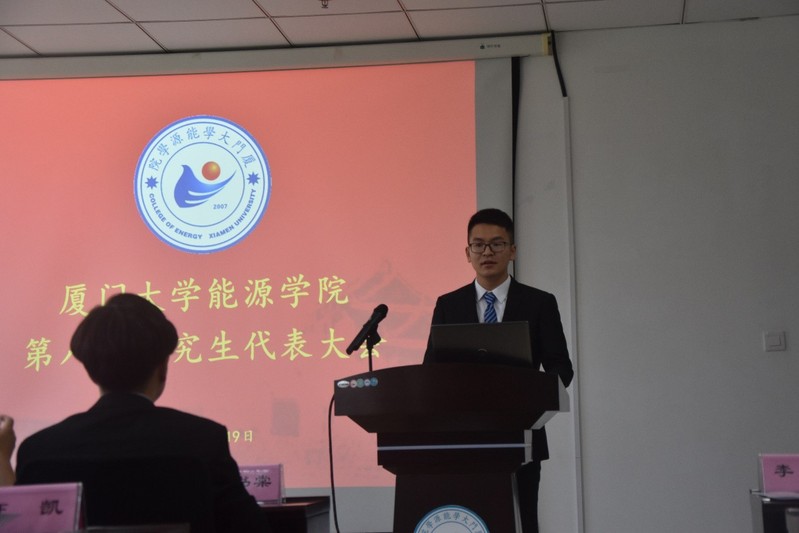 然后由能源学院第七届研究生会副主席吴少基同学做关于建立《厦门大学能院学院研究生会章程》的报告,全体与会代表审议该章程。这份章程是能源学院研究生会历史上第一个章程性文件,对能源学院研究生会制度完善、未来发展都有举足轻重的作用。