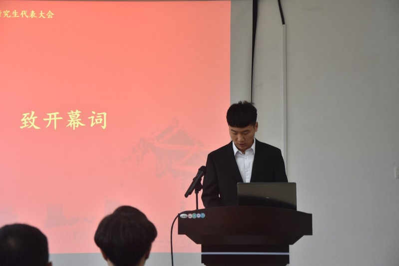 首先,会议第一项,全体起立,奏唱中华人民共和国国歌。然后,由能源学院第七届研究生团总支书记高和同学致开幕词,交代本次大会的三大任务,并预祝大会圆满完成。