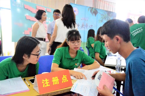 金砖的白鹭刚去,厦大的凤凰花聚。翔安天顶白云追追赶赶,映雪香山人们来来往往,能源学院迎来56名本科生和61名研究生。9月9日,由本科生党支部牵头,以党员、学生干部为重要力量组成的志愿者团队,把迎新工作作为“两学一做”的生动实践,落实“关键在做”的党员学习教育精神,给新生留下深刻印象。9日一早,在行李托运处、学生活动中心注册点、香山书院迎新点,迎新志愿者们在党员的带领下早早就位,他们分工明确,不辞辛劳,一切井井有条。他们或严谨有序,细心为新生完成注册,说明近期注意事项;或顶着炎炎烈日,热情为新生指引并带领他们前往宿舍安顿;或流动在校区,随时为路上的学生及家长提供可能的帮助。即便烈日难遮,工作紧张,志愿者们却始终怀着饱满的热情,在翔安的阳光下一一绽放着灿烂欣慰的笑容。