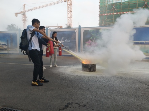 接着,保卫办组织全体学生进行了扑灭初起火灾的实际操作,让每一名学生亲身体验并使用灭火器,保证每个同学都能够真正学会并掌握灭火技能。