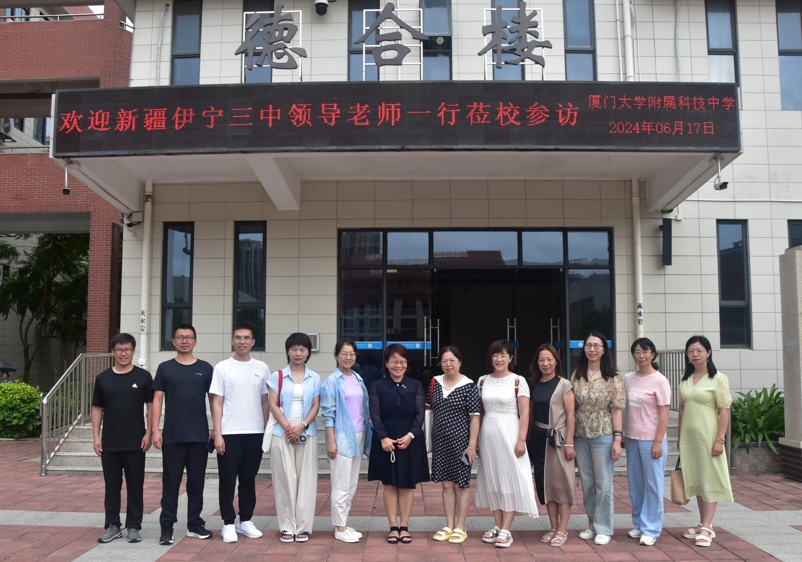 为扎实做好厦门大学在新疆的招生宣传工作,服务厦门大学高考招生的优质生源校-新疆伊宁市第三中学的需求,推进大学与中学的衔接贯通,增进学校之间的沟通交流,能源学院联系厦门市优质中学-厦门大学附属科技中学,三方就新高考选科相关工作展开深入交流。2024年6月17日下午,能源学院副院长(主持工作)郑志锋、党委副书记罗俊峰与伊宁三中校长高焱等一行走访科技中学翔安校区,活动得到科技中学副校长傅强、办公室副主任王伟龄的大力支持。
