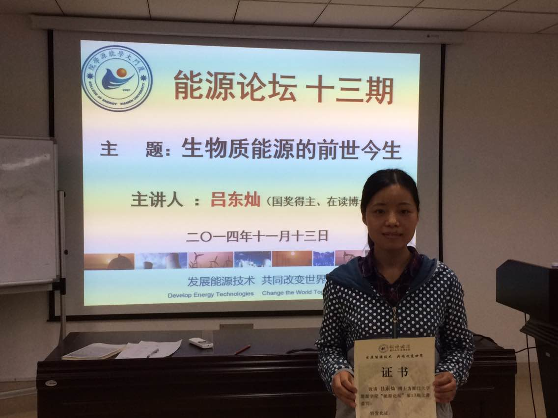 11月13日晚7:30,第十三期能源论坛在能源学院和木楼A221成功开讲。能源学院在读博士生、2013年的研究生国家奖学金得主吕东灿同学受学院邀请为大家带来了一场题为《生物质能源的前世今生》的精彩讲座。2013级和2014级本科生及部分研究生到场观看了本次讲座。