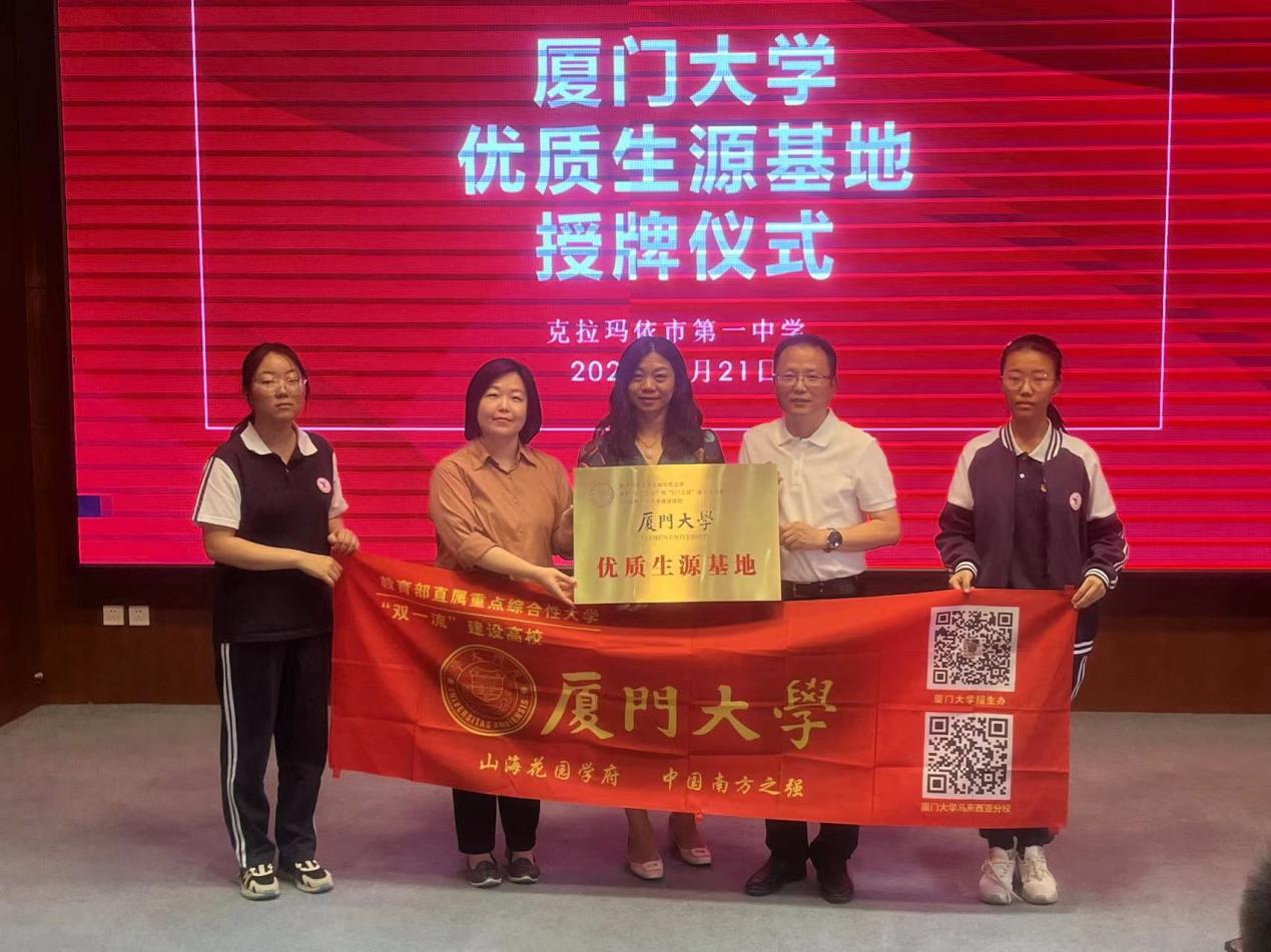 2024年6月21日,厦门大学新疆招生宣传组一行在能源学院副院长赵英汝教授带队下赴克拉玛依第一中学进行高考招生宣讲及厦门大学优质生源基地挂牌仪式。克拉玛依市教育局长张应勋出席了活动。