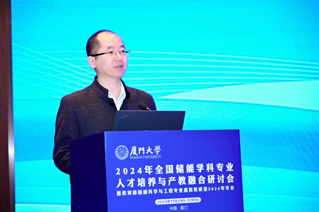 厦门大学党委常委、副校长尤延铖在开幕式上致辞指出,随着全球能源结构的转型升级和我国新型能源体系建设的推进,储能技术作为新型能源体系中的关键支撑,储能学科建设和人才培养的重要性和紧迫性日益显著。他强调,要以会议为契机促进我国储能学科专业建设与人才培养,加快助力储能领域“高精尖缺”人才培养,增强产业关键核心技术攻关和自主创新能力,推动高等教育与人工智能融合发展,联动构建产教融合协同育人新生态,为推动储能科学专业高质量发展、建设高水平科技强国的新征程中贡献智慧和力量。