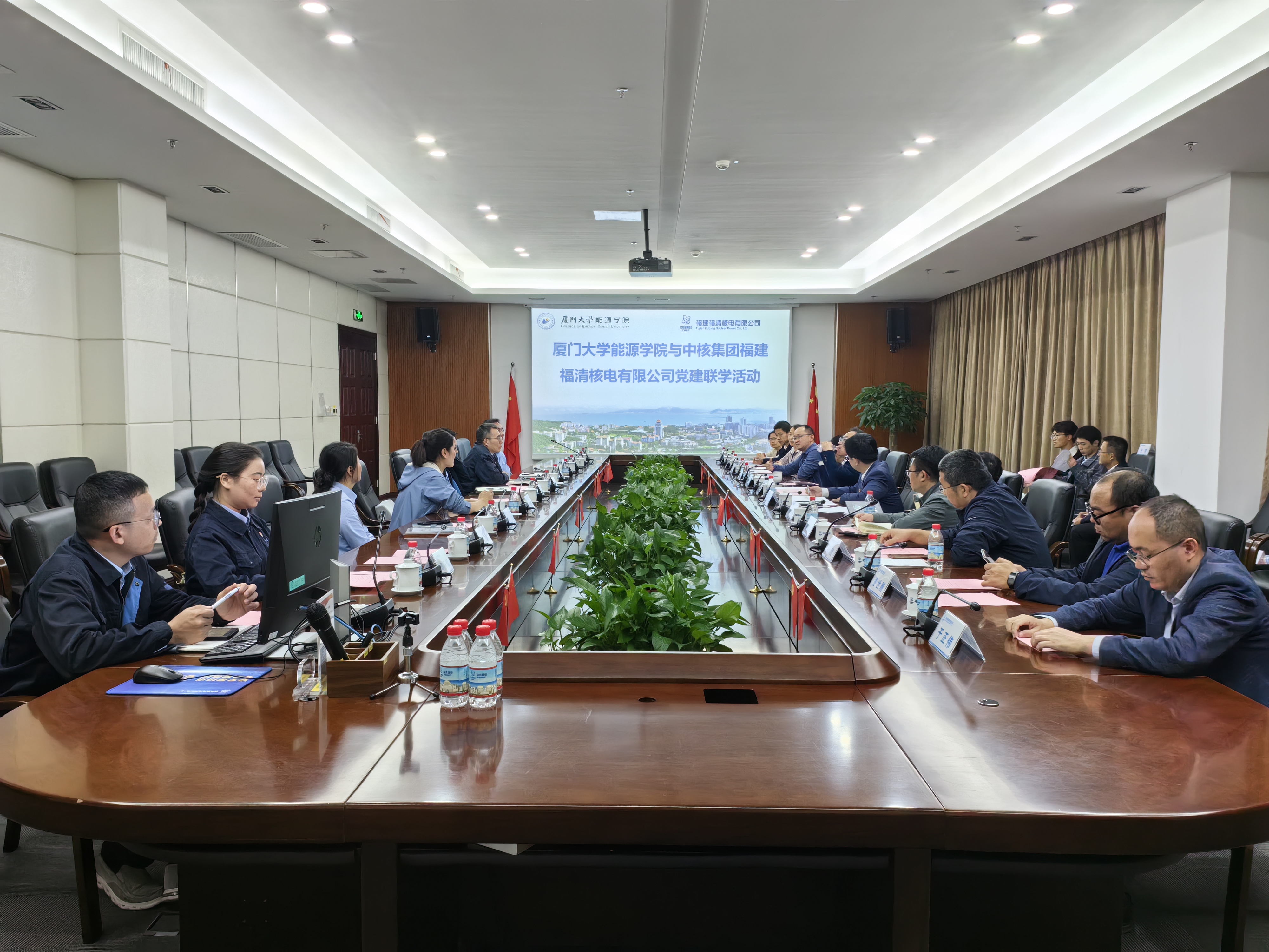 尤延铖表示,厦门大学历来高度重视与头部央企、领军企业合作,与地方、企业的联系日益紧密;他对福清核电长期以来对学校的支持表示感谢,希望双方加强交流互动,依托地方产业政策和科研基金,开展科技创新与人才培养合作,学校要更多地为企业发展服务;他还对创新形式开展党建联学、促进党建与业务深度融合给予了赞赏。朱鸿伟对我校一行表示热烈欢迎,他说,厦门大学是福清核电重要的人才来源地,目前已有数十位厦大学子就职,为公司事业发展做出了重要贡献;此次活动必将促进双方的友谊,为推动今后的全方位合作打下良好基础,企业要为学校人才培养提供更好条件。