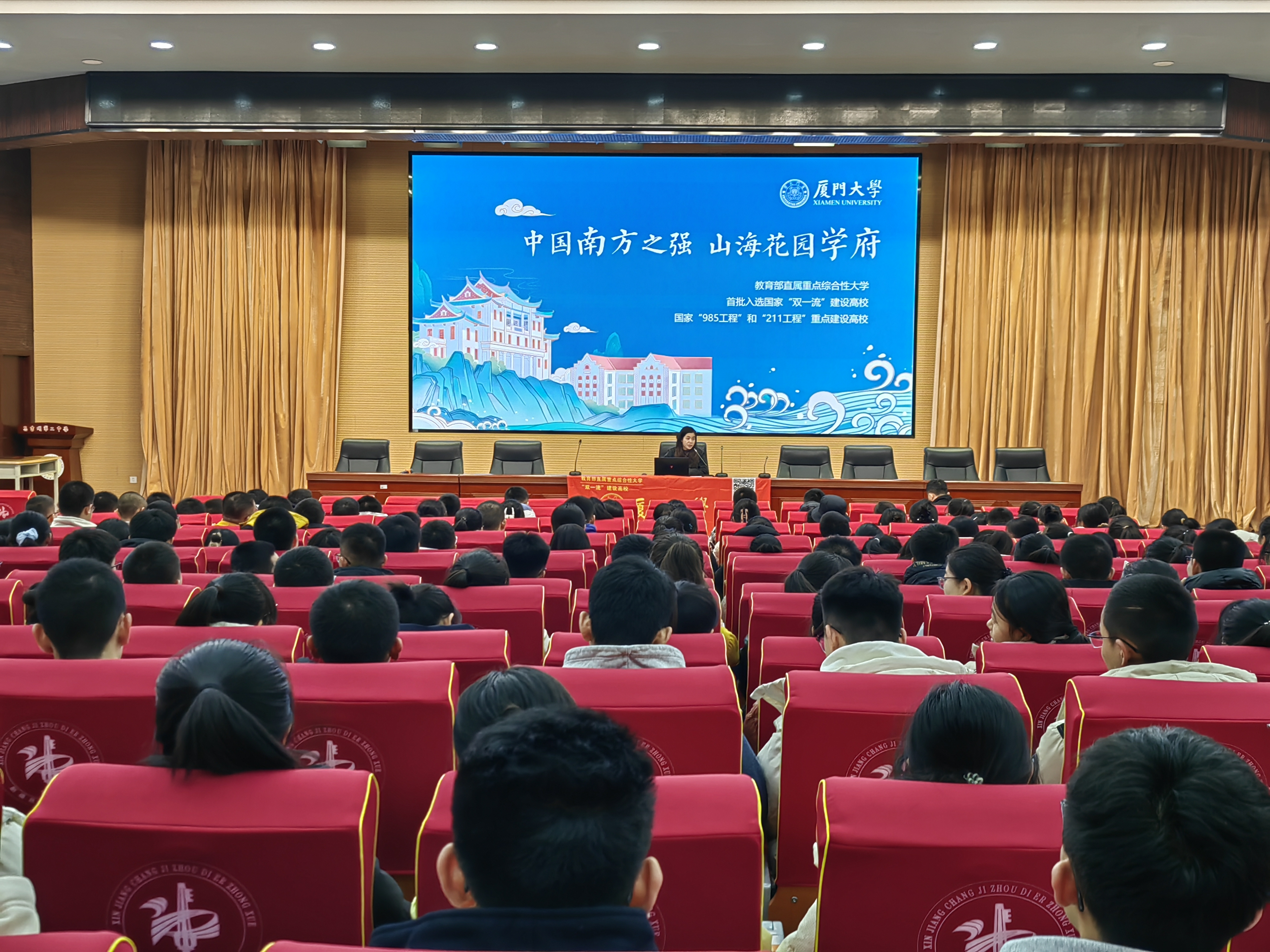 在宣讲中,赖炜芳从人才培养、师资队伍、学科建设、校园环境、文化传承等方面介绍厦门大学深厚的历史底蕴和优良的学风校风,以及坚持“以学生为中心”为学生提供不同成长平台等情况。鼓励同学们珍惜当下、勤奋踏实,始终保持学习的热情,为未来成长打下坚实的基础,也期待每一位有梦想、有才华的新疆学子加入厦门大学、加入能源学院,携手共创美好明天。