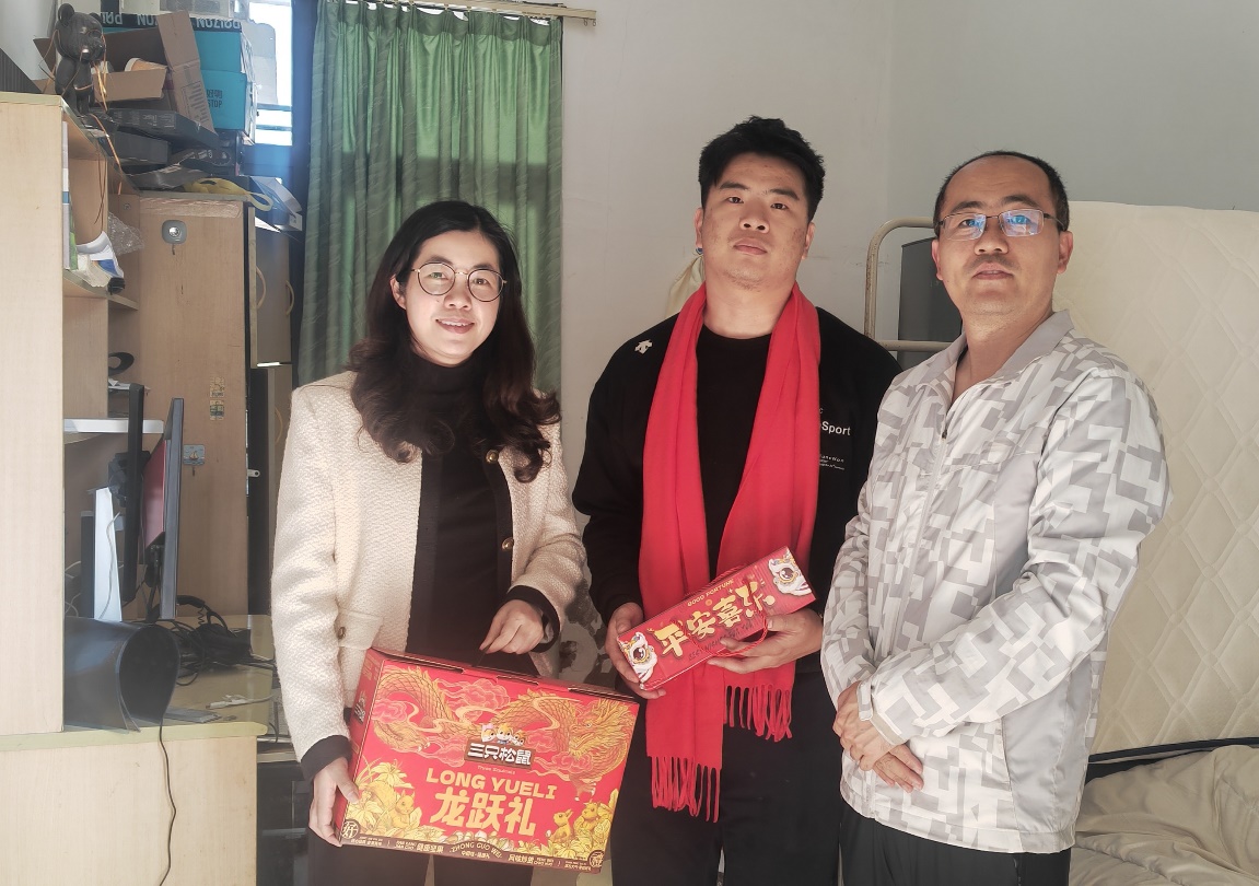 春节前夕,学院还 以多形式积极开展节前走访慰问活动 ,看望慰问学院教师、留校学生、物业员工等,为他们送上亲切的关怀与温暖,并致以新春的问候和美好的祝福。