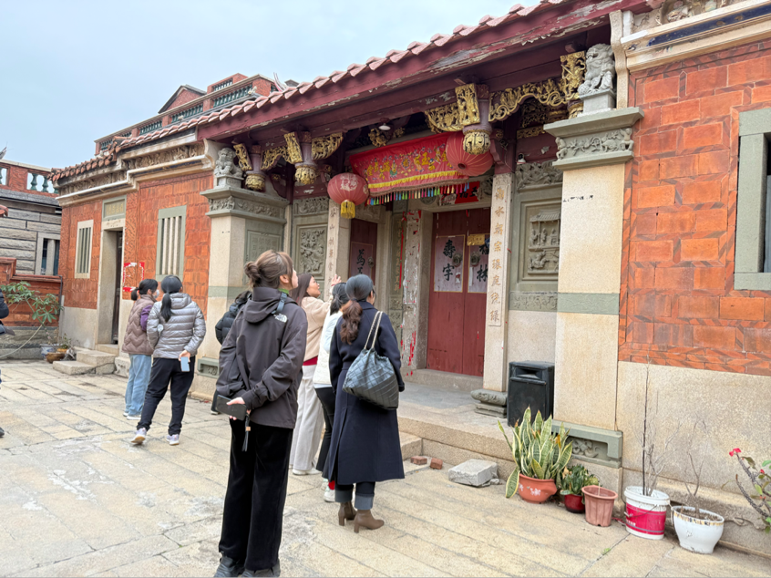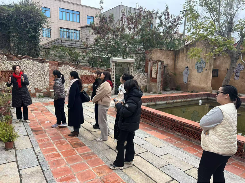 活动首站来到南安市奎霞村。考察从海滨启程,女教职工们参观了奎霞华侨当年渡海谋生的起点——奎霞村出海港口。随后,在讲解员的引导下,大家走进奎霞建筑群。这座由奎霞村林氏族人于清末、民国及新中国成立初期陆续建造的建筑群,巧妙融合了闽南传统民居与南洋建筑风格。讲解员生动详实地介绍了建筑的历史沿革与文化价值,使大家不仅领略到精美的建筑艺术,更深刻体会到华侨爱国爱乡的赤子情怀。