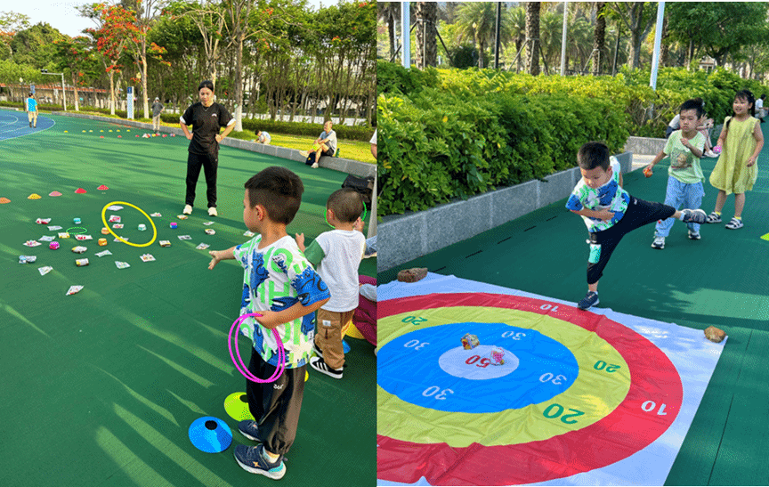 活动特别准备了丰厚的套圈礼物,套圈游戏区,此起彼伏的欢呼声伴随着成功的雀跃,小小的圈圈套中的不仅是礼物,更是满满的成就感。孩子们将战利品高高举起,骄傲地向伙伴们展示,汗水与笑容交织,将整个操场染成了欢乐的海洋。
