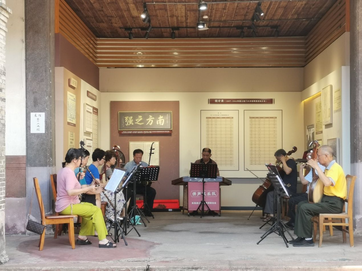 调研期间,在原龙岩市副市长、我校1978级计统系校友张斯良,龙岩校友会会长、我校1986级法学专业校友廖格民,龙岩校友会副会长、我校2002级管理学院人力资源管理专业校友刘晔,龙岩校友会秘书长、我校1993级旅游管理专业校友罗晓玲等的大力支持下,学院一行利用中午时间参观厦门大学理学院迁移龙岩县(今新罗区)办学旧址,在潮海楼忆古思今,用心聆听激荡心灵的“山海协作曲”。恰逢当地“侨声汉乐队”在楼内例行排练,乐队用民族乐器演奏了厦大校歌等曲目,别有一番韵味,体现了龙岩人民和校友们对厦大的深厚情谊。